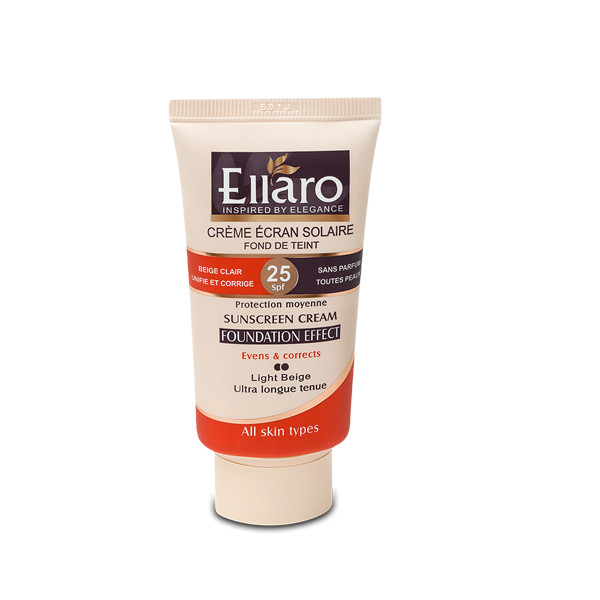 کرم ضد آفتاب SPF25 الارو Ellaro با پوشش کرم پودری انواع پوست بژ روشن حجم 40 میل