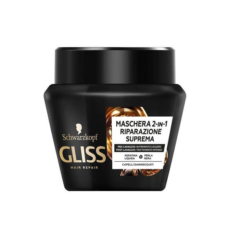 ماسک موی گلیس GLISS مشکی مناسب موهای خشک و آسیب دیده اورجینال آلمان حجم 300 میل