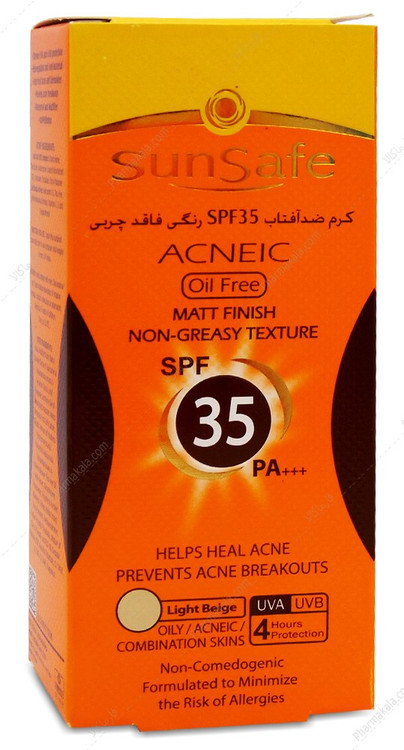 کرم ضد آفتاب فاقد چربی سان سیف SPF35 کرم پودری رنگ بژ روشن مناسب پوستهای چرب و آکنه ای حجم 50 میل