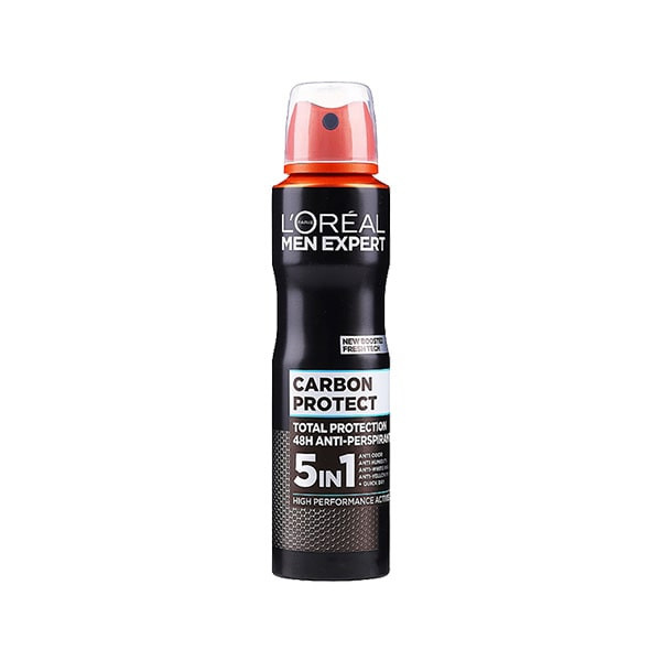 اسپری ضد تعریق مردانه لورآل LOREAL رنگ مشکی مدل کربن پروتکت CARBON PROTECT 5IN1 اورجینال فرانسه حجم 250 میل