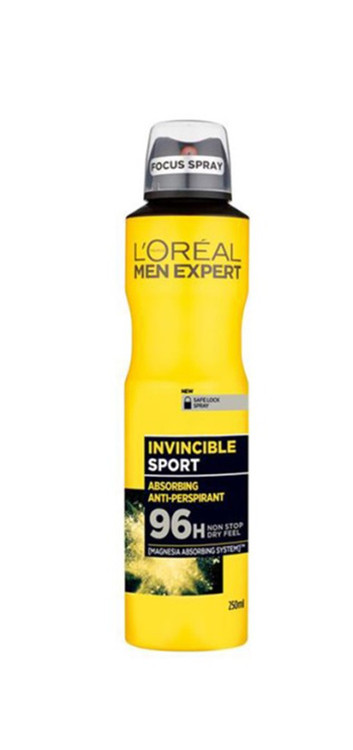 اسپری ضد تعریق مردانه لورآل LOREAL رنگ زرد مدل اینویسیبل اسپرت INVINCIBLE SPORT 96H اورجینال فرانسه حجم 250 میل